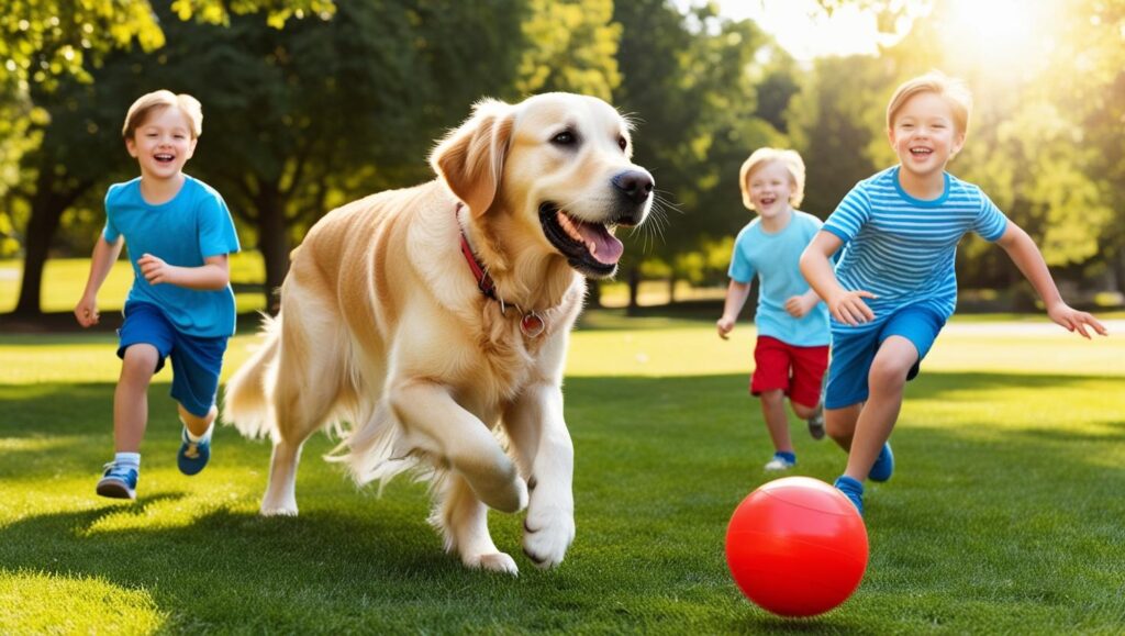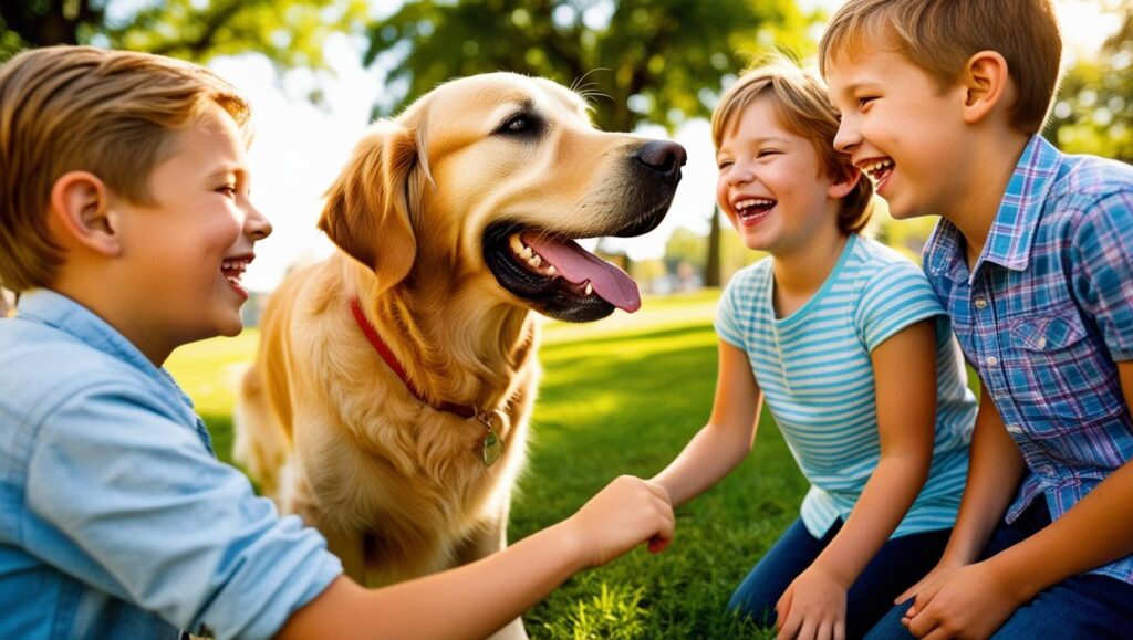 • Descrição: Um Golden Retriever que foi introduzido às crianças da família de forma gradual, resultando em uma convivência harmoniosa.