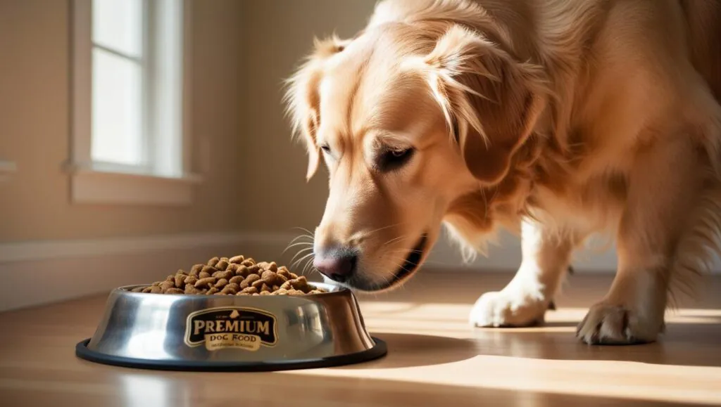 - Descrição: Um Labrador Retriever que aceitou uma nova ração após uma transição gradual de uma semana.